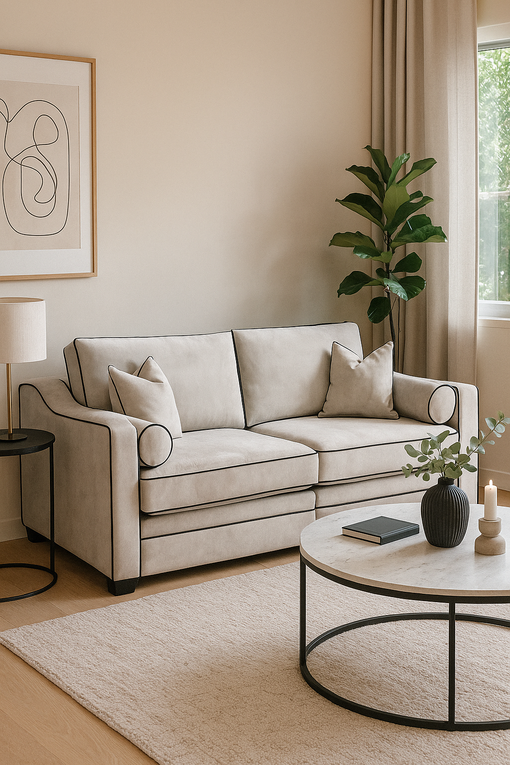 Curved arms, tailored piping, and handcrafted comfort for modern living.